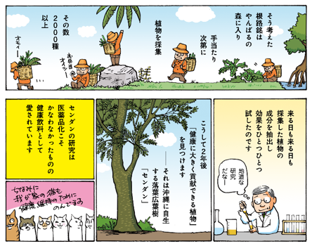 - 【販路拡大】沖縄県内にとどまらず、日本全国、海外まで『センダン商品』の認知度を広げ設立者の 終戦後WHOと対峙し日本の国際学会での発言権を勝ち取った逸話を持つ根路銘 国昭が厚労省定年退職後に、挑んだ『沖縄の自然と風土を愛し沖縄の天然素材で世界の人々の健康に貢献する。』という創業理念を実践していきます。