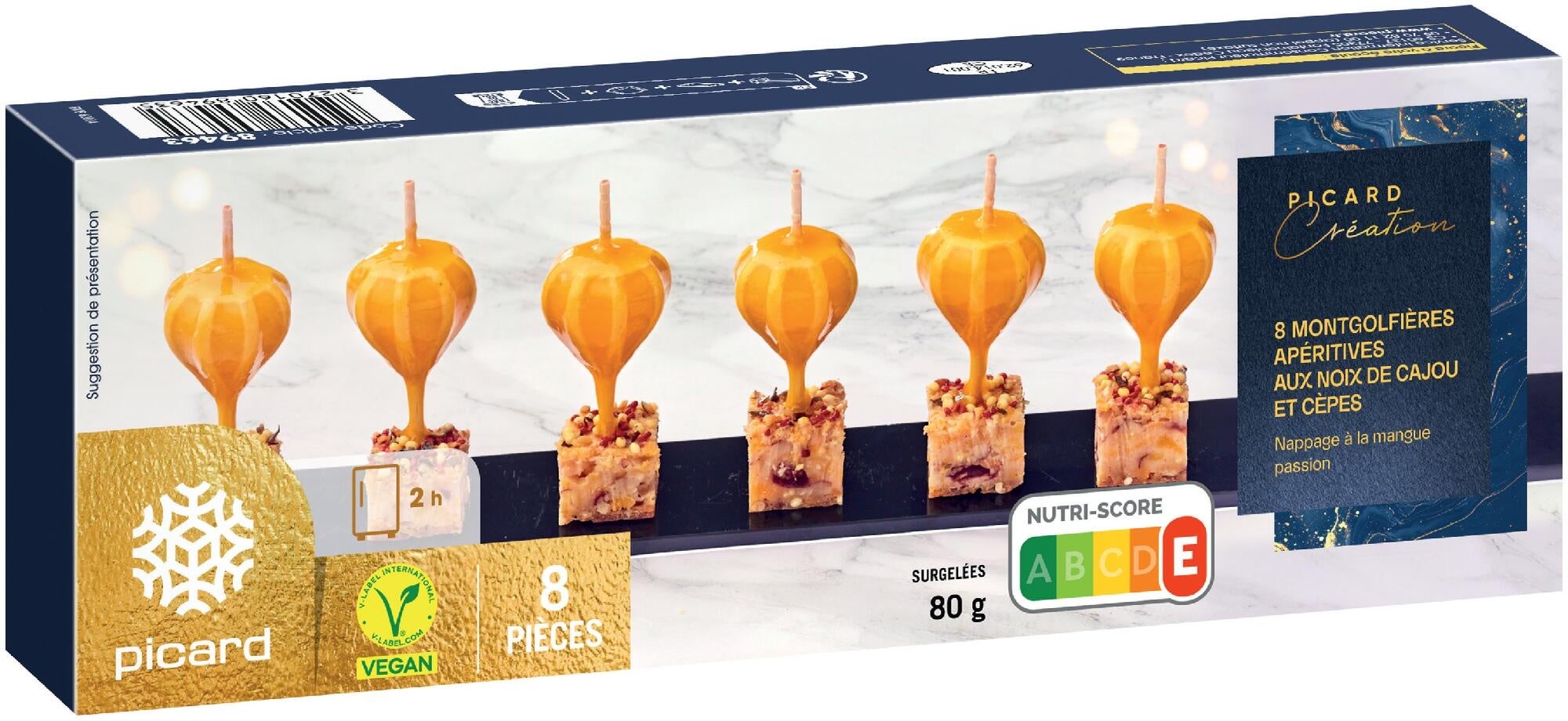 小さな気球のアペリティフ (8個入)ノア・グラ(ココナッツオイル、カシューナッツピューレなどで作った代替クリーム)に、マンゴー&パッションフルーツのジュレを合わせたひと粒アペリティフ。気球のような見た目で食卓を華やかに彩ります。ワインのおつまみや、前菜に“ひとひねり”加えたい時にもおすすめです。