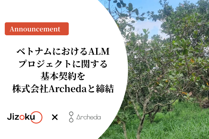 株式会社Jizoku(本社:東京都国立市、代表取締役:片岡 慶一郎、以下「Jizoku」)は、衛星データを活用した自然由来カーボンクレジット向け解析ソリューションを提供する株式会社Archeda(本社:東京都千代田区、代表取締役:津村 洸匡、以下「Archeda」)と、ベトナムにおける農地管理(Agricultural Land Management:ALM)プロジェクトへの分析支援に関して、基本契約を締結したことをお知らせいたします。