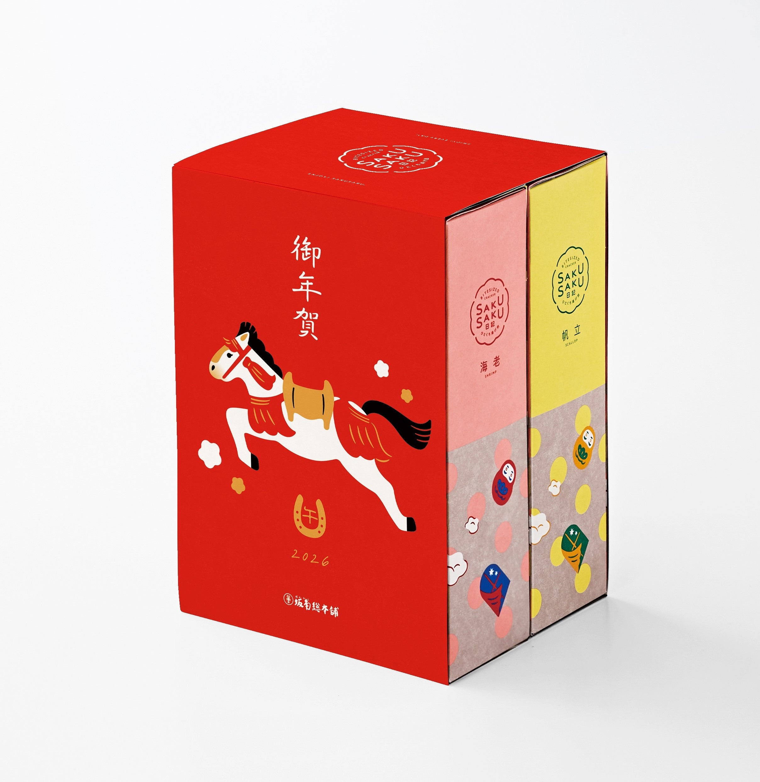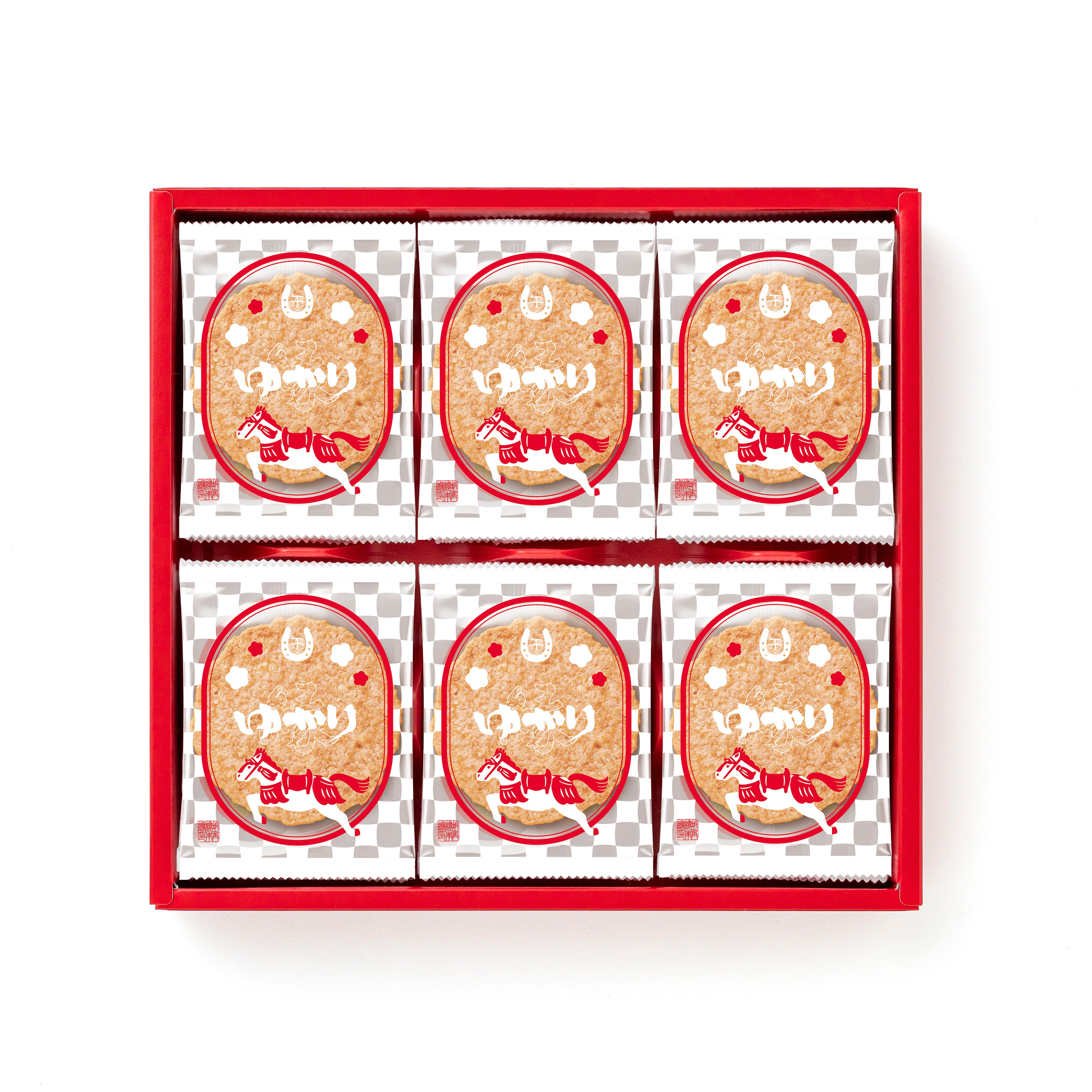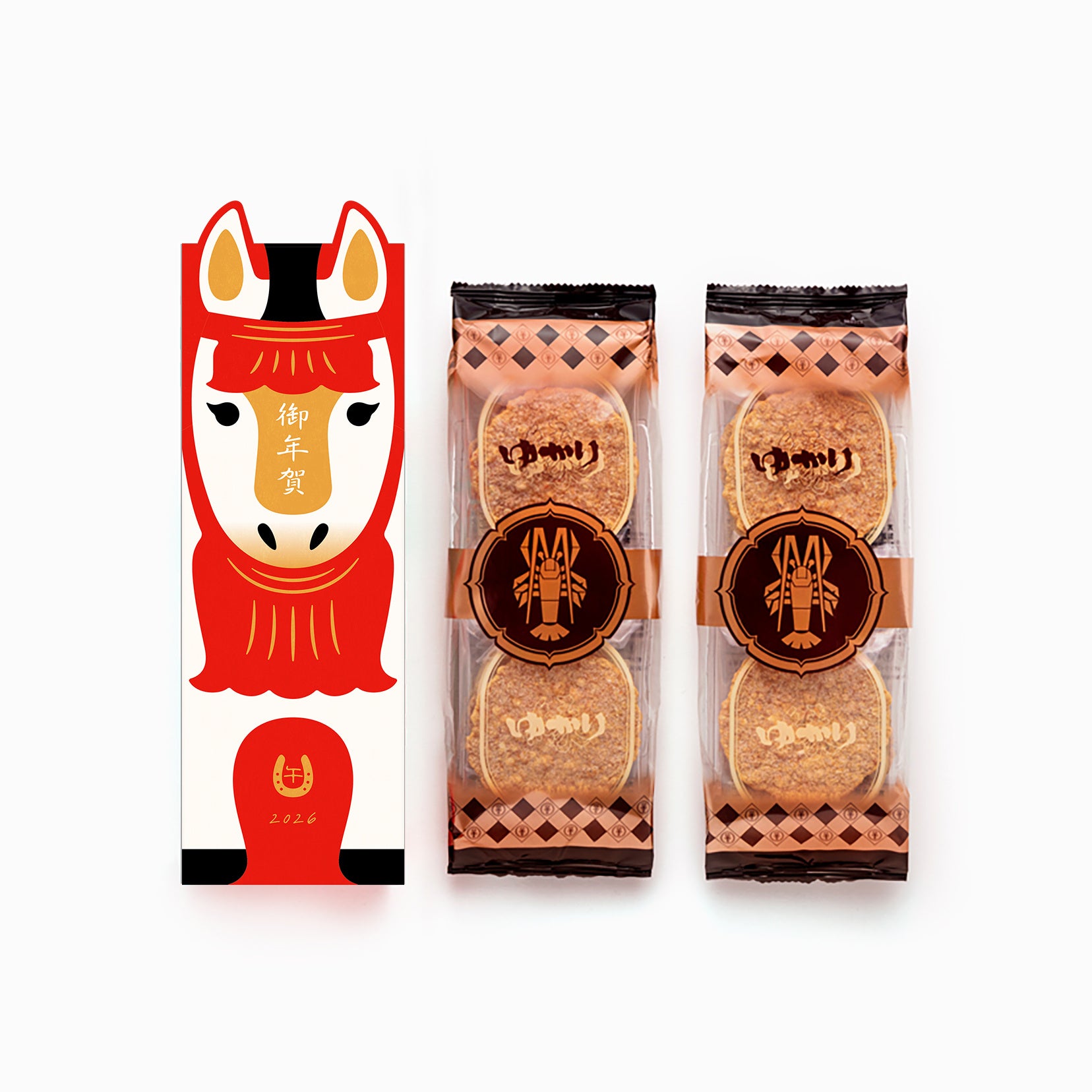 1. 〈ゆかり〉干支ノ箱[午] …内容量:ゆかり8枚入×2袋 価格:1,382円(税込)