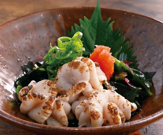 「炙り真鱈白子ぽん酢」は、炙ることで旨味が引き立ち、香ばしい焼き目とやわらかい白子の食感を楽しめます。
