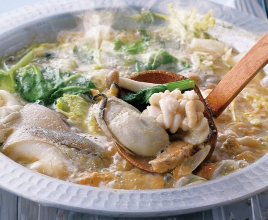 “広島県産の牡蠣”“あん肝”“真鱈白子”など、旬の海の幸を香り高い生姜味噌の出汁でお楽しみください。