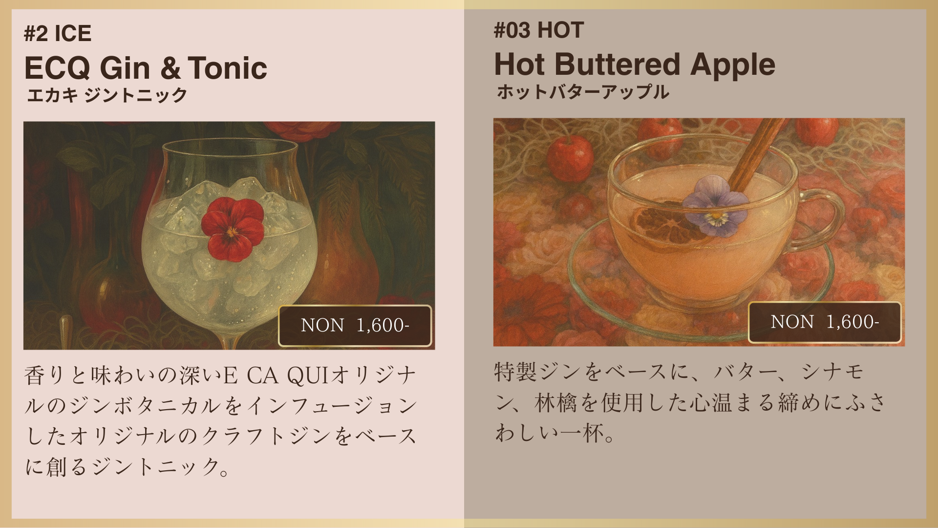 内容:E CA QUI監修のボタニカル素材 × お花のカクテルの特別提供