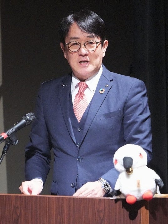 日本コウノトリの会・佐竹節夫代表(元・豊岡市職員)と、JAたじま(本店:豊岡市)の山下正明専務が「いのち育む田んぼの20年」と題して基調報告。豊岡市でコウノトリとの共生に向けて実践されている、農薬の使用を抑え、冬も田んぼに水を張る「コウノトリ育む農法」を中心に、放鳥から20年の歩みを振り返りました。販路開拓に尽力してきた山下専務は「生産者と消費者が仲間となり、環境を将来世代につなげることが重要」と強調しました。