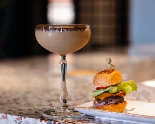 バーカウンター限定 ミニバーガー|カクテルとのペアリングに。人気バーガーメニュー「@キャプション」を手軽に楽しめるサイズで提供|提供価格:550円(税込)|提供期間|2025年12月1日~|提供時間:14:30~22:00(L.O. 21:00)