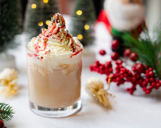 クリスマスラテ|濃厚なホイップクリームと甘酸っぱいストロベリーシロップを組み合わせたカフェラテ。心躍るホリデーシーズンにぴったり|提供価格:850円(税込)|提供期間:2025年12月1日~12月25日|提供時間:11:00~22:00(L.O. 21:30)