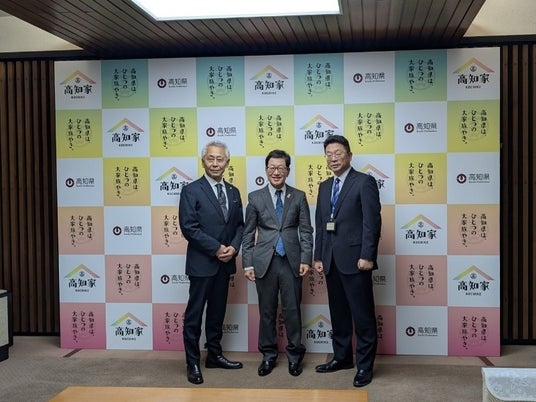 写真(右から): JA高知県 代表理事専務 山下文広氏、高知県知事 濱田省司氏、DKSHジャパン 代表取締役社長 淺田智史