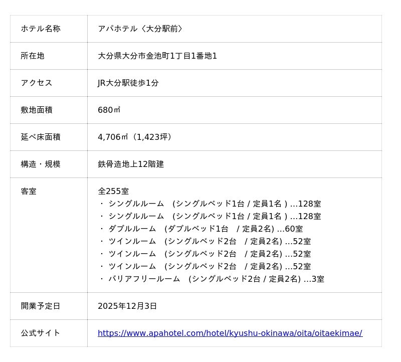 【「アパホテル〈大分駅前〉」概要】