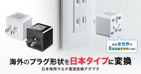サンワサプライ株式会社(本社:岡山市北区田町1-10-1、代表取締役社長 山田和範)は、世界中の主要な8種類の電源コンセントプラグを日本Aタイプに変換できる、世界初のマルチタイプ電源変換アダプタ「TR-AD5BKK(ブラック)」と「TR-AD5WK(ホワイト)」を発売しました。
