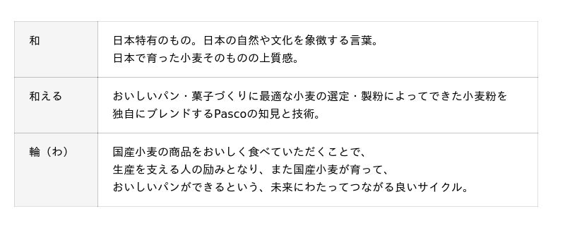 Pascoは、創業時からの「食糧難を解決したい」という想いを受け継ぎ、食料自給率向上への貢献を目的に、2008年より国産小麦の小麦粉を使用した商品開発に取り組んできました。この取り組みをさらに推し進めるため、2025年2月、Pascoがこれまで、生産者・研究者など国産小麦の関係者の方々と深くつながりながら培ってきた国産小麦への知見や技術の証として、カテゴリやシリーズをまたいだ新ブランド『和小麦』を立ち上げました。『和小麦』商品の商品パッケージには目印として「和小麦ロゴ」をデザインしています。Pascoの『和小麦』は、小麦選び、小麦粉づくり、そのブレンドにまでこだわった、国産小麦のおいしいパン・菓子をお客さまにお届けします。