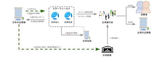 日本からアジアへの越境販売を支援するスターフィールド株式会社(本社:東京都豊島区、代表取締役:星野翔太、以下「当社、スターフィールド」)は、かねてより提供しているオンライン(越境EC)を中心とした支援に加え、当社台湾支店(日商凛千股?有限公司台灣分公司)を通じた台湾での展示会出展などオフライン支援も拡充しています。
