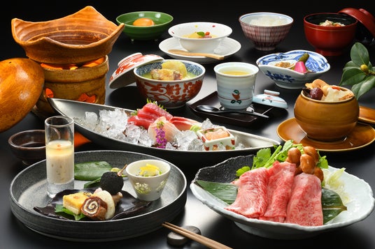 「発酵」を取り入れた冬料理の「福島牛陶板焼き会席」(一例)