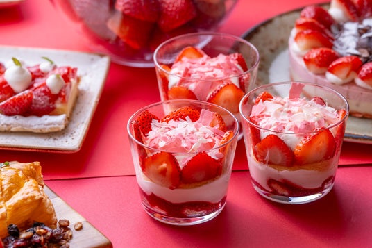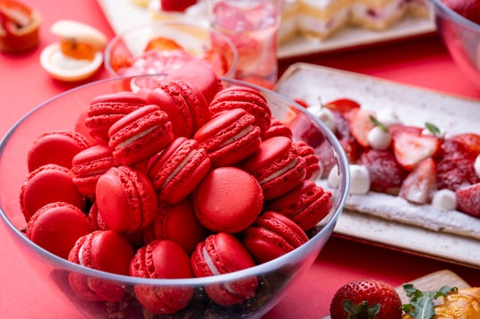 スイーツセレクションお客様が作るチョコレートコーティング ストロベリー / マカロン / ストロベリーとシャンティクリームのタルト / ストロベリー トライフル / ストロベリーゼリー / ストロベリーマリネ / ストロベリーとマスカルポーネ クリームケーキ / ストロベリーショートケーキ / チョコレートタルト / ストロベリーパイ