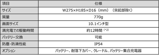 バッテリーは従来通りパック方式を採用しており、店舗スタッフによるバッテリー交換が可能です。バッテリーの劣化を起因とした本体交換の必要がないため、店舗のコスト削減へ貢献します。長時間運用の店舗では、予備として追加でバッテリーを購入することで、バッテリーを交換しながらタブレットの長時間連続駆動が可能です。