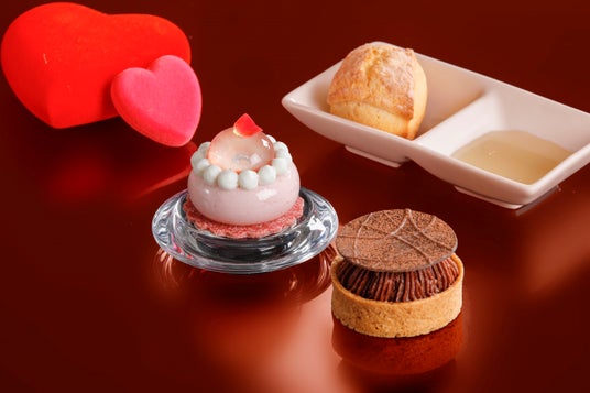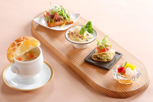 正月からバレンタインデーにかけて、冬のイベントを一度に楽しめるアフタヌーンティーをご用意しました。スタンド上段は「新春」をテーマに2026年の干支「丙午」と門松をモチーフにしたスイーツを、中段は「節分」をテーマに赤鬼と恵方巻に見立てたスイーツを、下段は「バレンタイン」をテーマに、ショコラタルトと淡いピンク色のスイーツを盛り付けました。また、クラムチャウダーのパイ包み焼きなど、冬にぴったりなセイボリーもご用意していますので、スイーツとともにお楽しみいただけます。