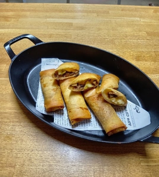 「お客様の目の前で揚げるサクサク手作りすき焼き春巻き」