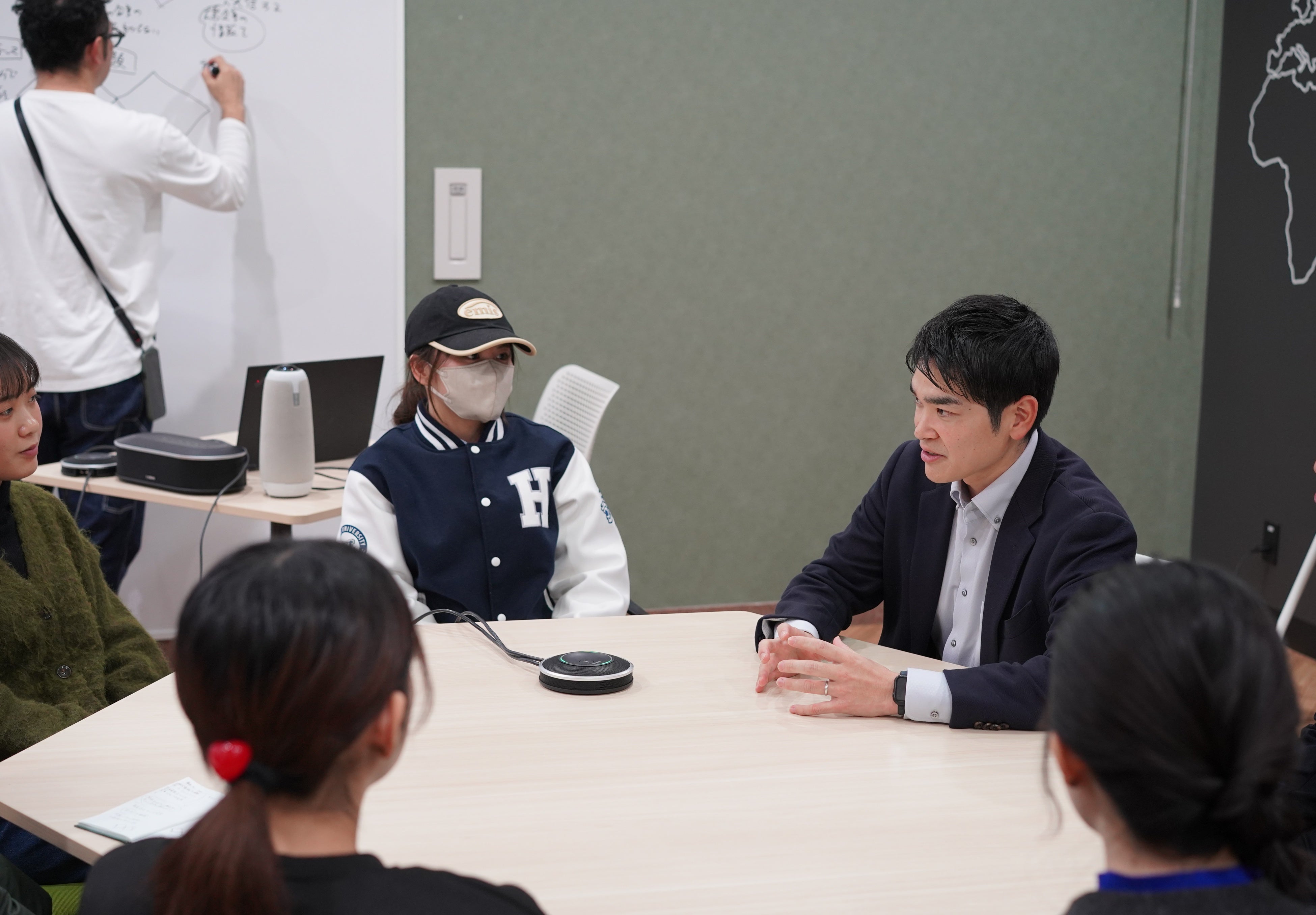 登壇企業による熱意あふれるプレゼンテーションに、オフラインで参加した10名の学生たちは真剣な表情で聞き入っていました。プレゼン後には、学生との活発なディスカッションや質疑応答が行われ、会場は終始前向きな雰囲気に包まれていました。