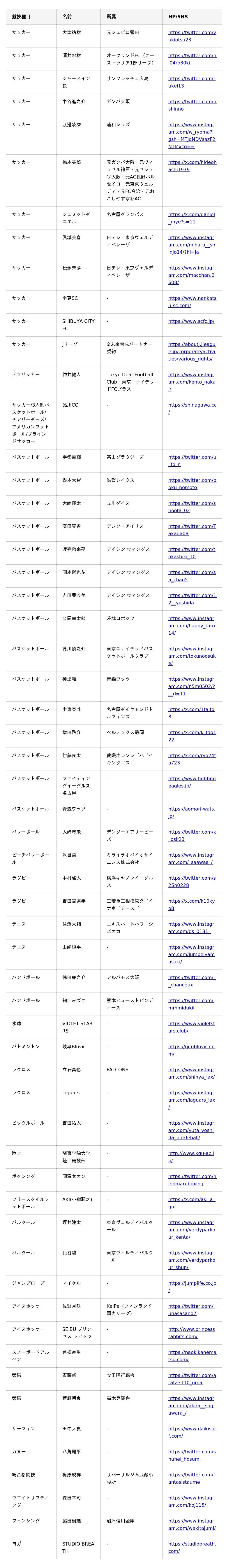 <BASE UP SPORTS サプライヤー契約一覧(現時点)>