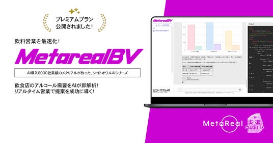 メタリアル・グループの株式会社ロゼッタ(代表取締役:五石 順一)は、飲食店アルコール飲料需要予測レポートAI エージェント「Metareal ビバレッジデマンド」(以下、Metareal BV)のプレミアムプラン(月額5万円(税込)、1日20回・月200回利用可能)を2025 年12月2日(火)より提供開始しました。