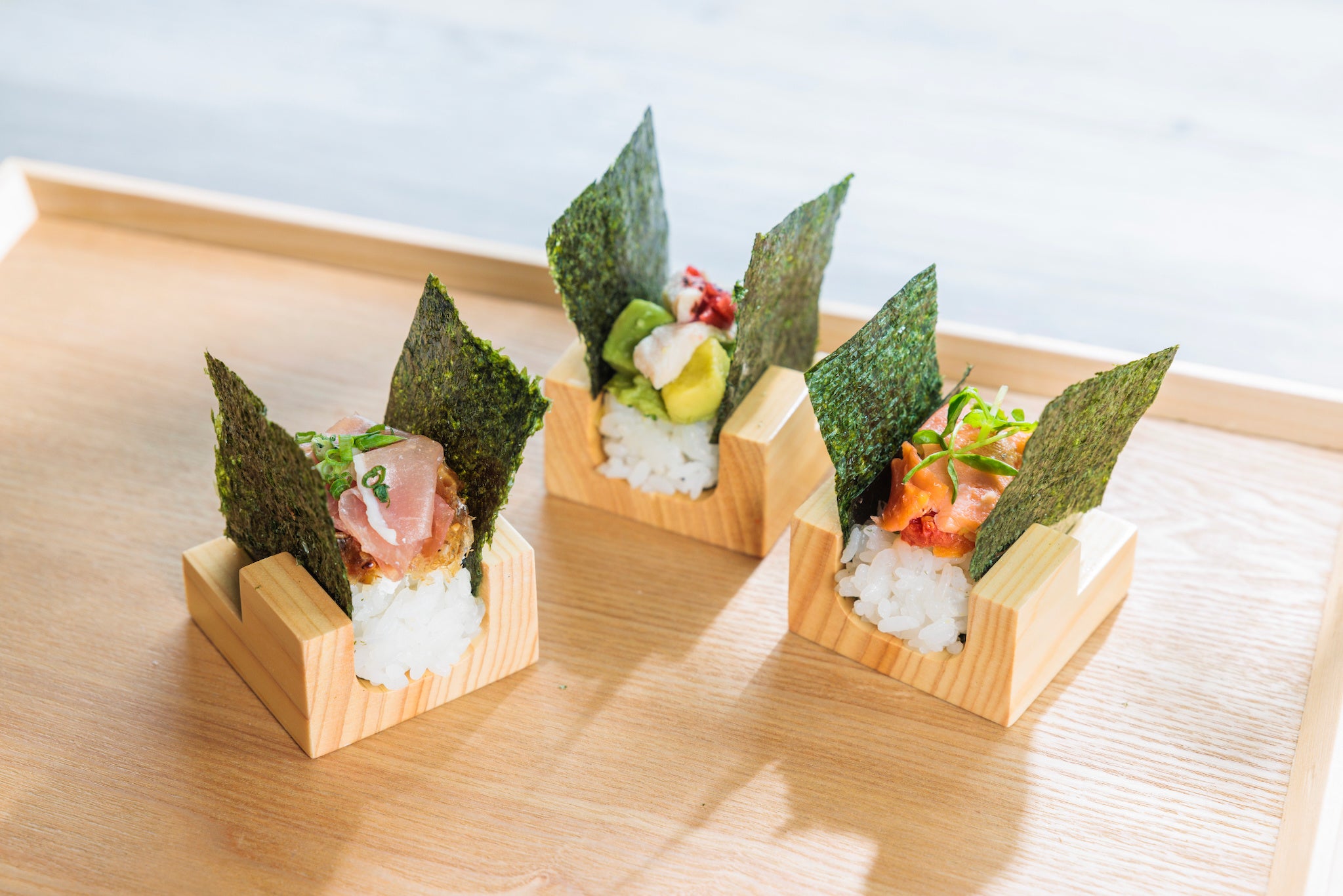 “THE 10” その3:ご褒美おむすびのライブキッチン(ライブキッチン)炊き立てのご当地米(金沢:石川県産ひゃくまん穀、神戸:兵庫県産コシヒカリ)に、具材は「生ハム×カッテージチーズ×おかか」や「蒸し鶏×ウメ×アボカド」など、定番×変わり種の組み合わせが楽しい、注文をお伺いしてから目の前で仕上げる握りたてのおむすび。各ホテルのオリジナル1種とあわせ、計4種よりお選びいただける、訪れる度に新たな出会いがある、人気メニューです。