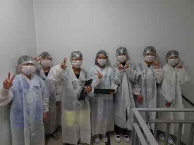 工場で作られたパスタを試食