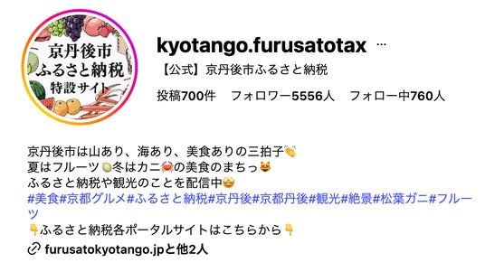 【公式】京丹後市ふるさと納税Instagramアカウント名:kyotango.furusatotax
