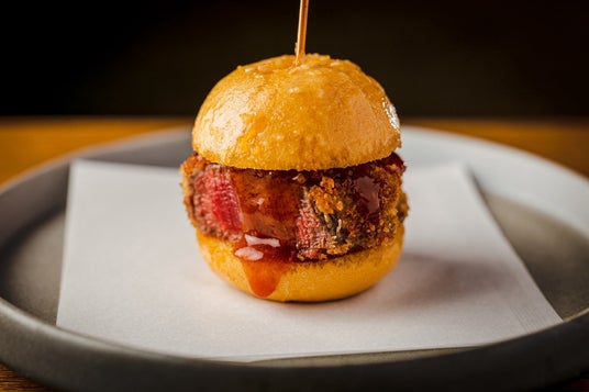 ▲当店のシグニチャー。ヒレカツスライダー