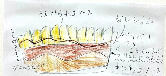 身近な名産品「梨」の生産過程を学び、生産者の想いと、残念ながら天候などに左右されてB級・C級となってしまった梨も味はA級と変わらない事を知り、梨パンとして人気商品になってほしいと願いを込めた。