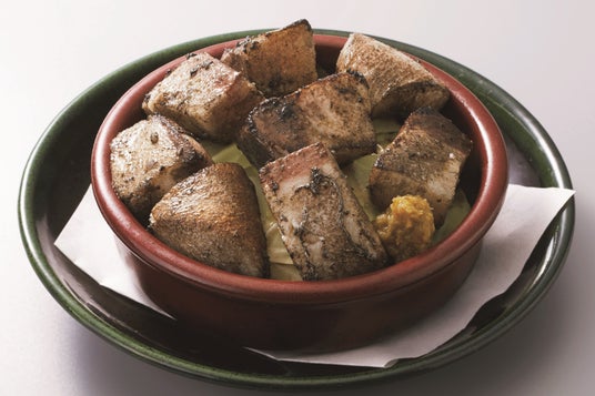 寒ぶりレア炭火焼角切りにした寒ぶりを焼台で丁寧に炙り、炭火の香りをまとわせた、格別に芳醇な美味しさの一皿です。表面は香ばしく、中はレアな食感で、ぶり本来の旨みが凝縮されています。