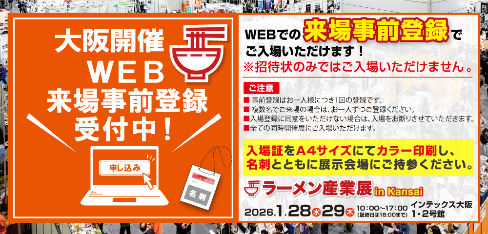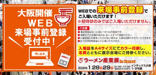 【ラーメン産業展 in Kansai 公式HP】 https://ramenexpo.jp/osaka.php【ラーメン産業展 公式X】 https://x.com/ramenexpo