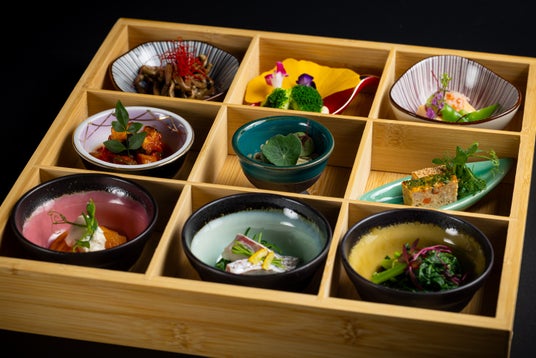 京都のおばんざい9種を楽しみながら、銀座の喧騒を離れ、ゆっくりと食と向き合うひとときをお届けします。