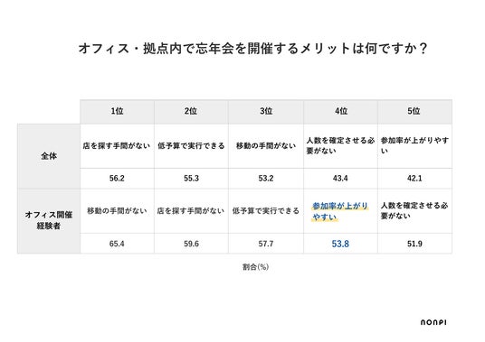 オフィス忘年会のメリットは“準備が楽で、参加率が上がりやすい”