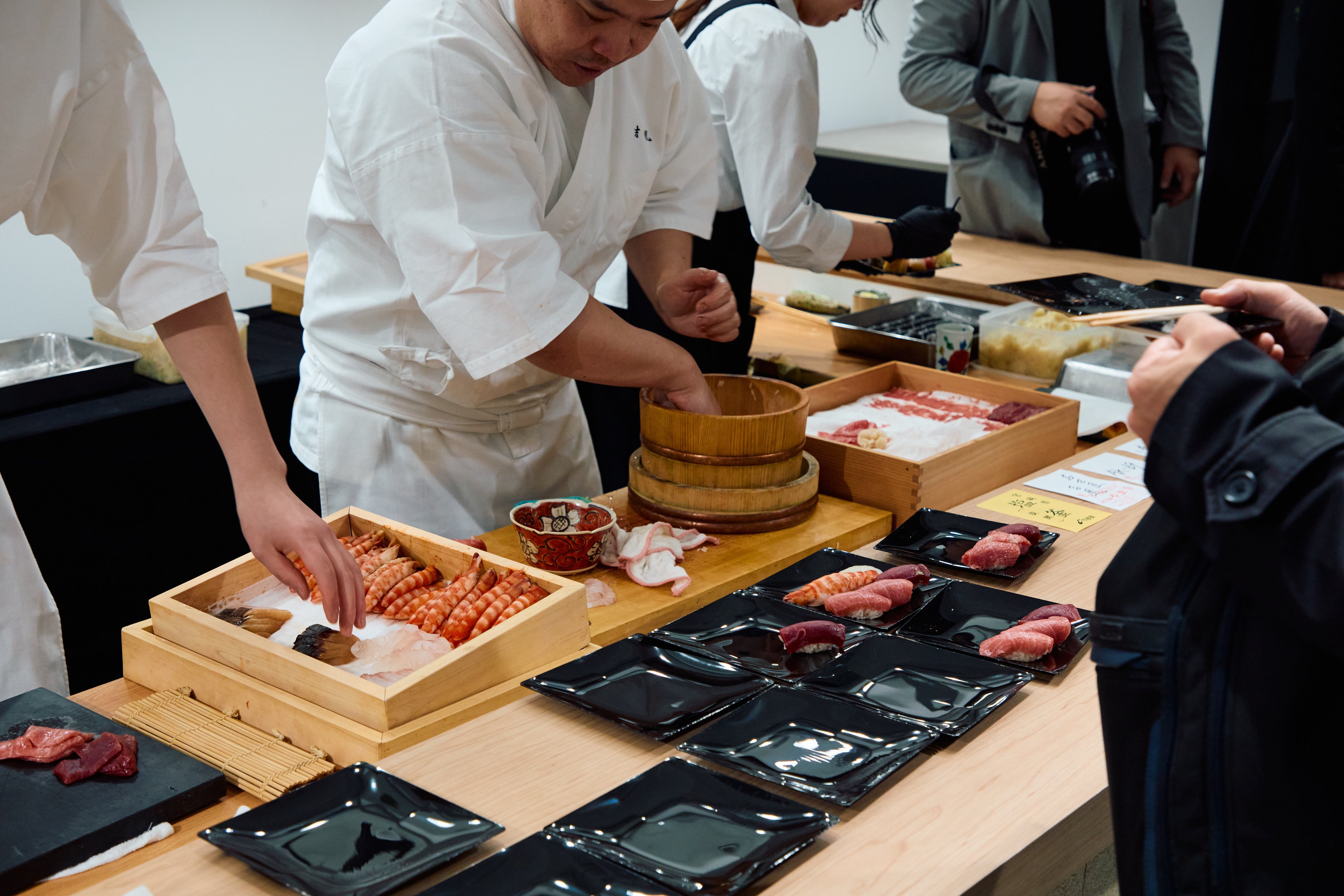 レセプション当日は、トークセッション、音楽パフォーマンス、盆栽の剪定ショー、「陸(ROKU)/玖(KYU)」と名古屋の名店「吉凰」の鮨のペアリングが行われ、伊勢ヶ濱親方(第73代横綱照ノ富士)や中日ドラゴンズの松山晋也投手などのトップアスリートから、日本一のマグロ専門仲卸「やま幸」の山口幸隆社長や、食通を唸らせる鮨の名店「くろ崎」の大将 黒崎一希氏、完全会員制レストランのMoDeRiTiOnのオーナーシェフ菅優樹氏など各界の著名人が参加しました。