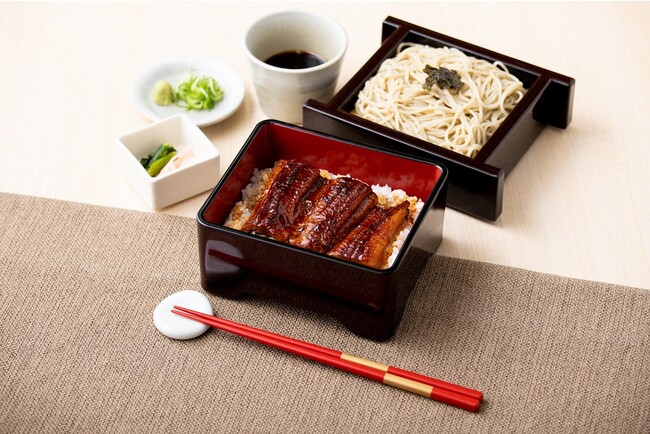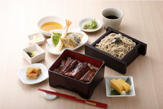 家族亭では、フェア期間中、定番のうな重とおそばのセットはもちろん、ちょっと豪華に天ぷらもついた「うな重と季節の天ぷらセット」を販売します。ふんわり焼き上げたうなぎと揚げたての季節の天ぷら、ミニざるそばのセットが暑い夏でも食欲をかきたてます。