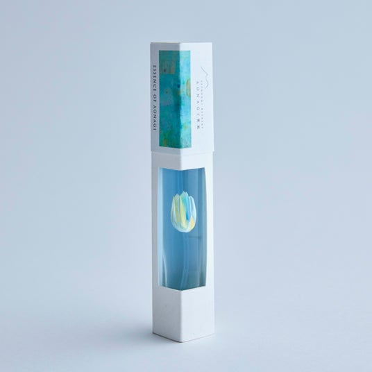 パッケージデザインには、愛媛で活動する自然画家 絵美氏がその香りからインスピレーションを受けて制作した作品を採用。 作品に使用した絵の具を用いてボトルにペイントを施し、限定100本をご用意いたしました。