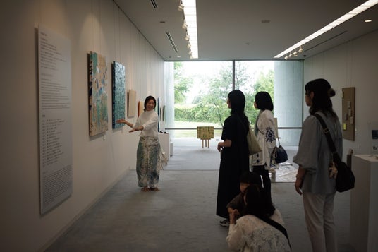 絵美氏自ら作品を語り、訪れた方々と交流する様子