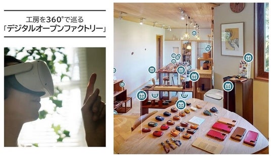 モノづくり産地に行かなければ体験することができない現地の店舗や工場のリアルなウォークスルー動画(インナービュー)と連携することで世界中とモノづくり産地を繋ぐサービスを実現するものです。