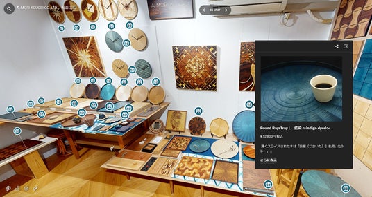 ウォークスルー動画内ではモノづくり企業やモノづくり自体の魅力を知ることができる様々なコンテンツの用意や、気に入った商品をその場で購入することができるEC連携まで整えています。