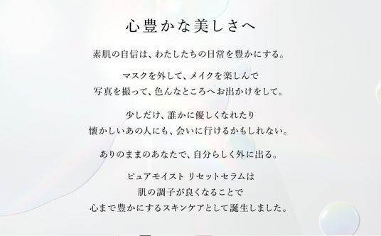 本記事は、ピュアモイスト リセットセラム誕生までの開発ストーリーです。