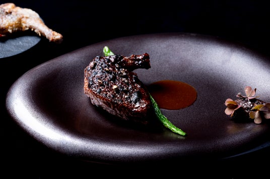 仔鳩を炭火で皮目を香ばしく焼き上げてから味噌を塗り、高温で味噌を塗った表面を炙るように焼き、中はジューシーに仕上げています。