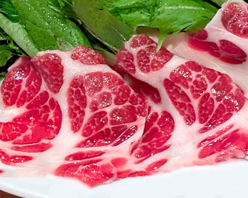 ■鹿の子:赤身に脂が網目状に入り、噛むほど甘みが広がる希少部位