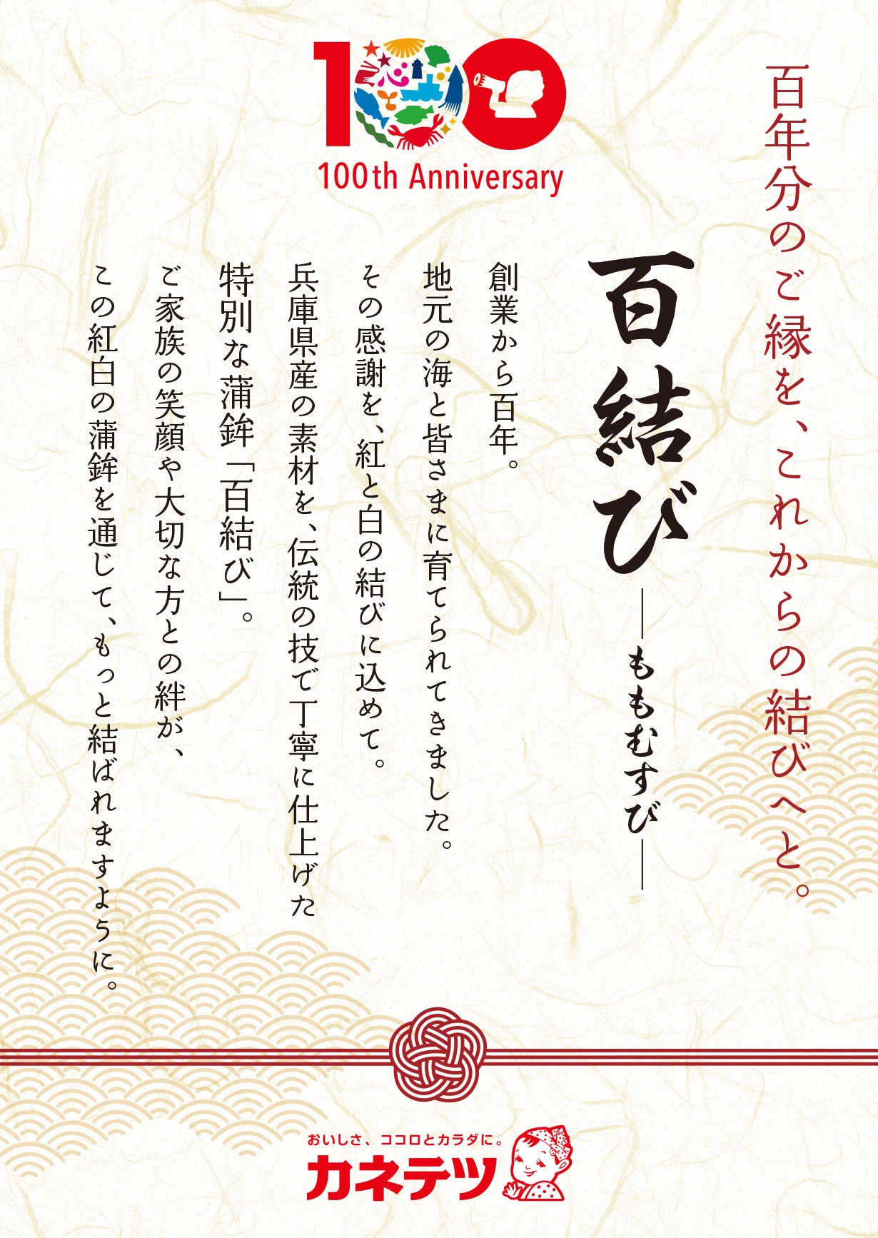 カネテツデリカフーズ株式会社(本社:兵庫県神戸市 代表取締役社長:村上 寛)は、2025年末と2026年始の期間限定新商品として、まもなく創業100年を迎えるカネテツデリカフーズ株式会社の特別な記念商品(お正月蒲鉾)「“灘の幸蒲鉾 百結び(ももむすび)”」を期間限定で販売いたします。
