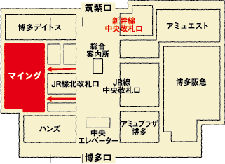 博多駅構内1階に位置する、九州最大級の博多・九州のおみやげ処。毎日多くの県外からお越しのお客様で賑わうが、スーパーをはじめとした食品店舗も多く、