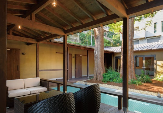 【the villa NOKI】 温泉地として1 0 0 0 年以上の歴史を誇る「熱海」の屋敷街に 緑あふれる多くの樹木が出迎える 一棟貸切のリゾートヴィラ