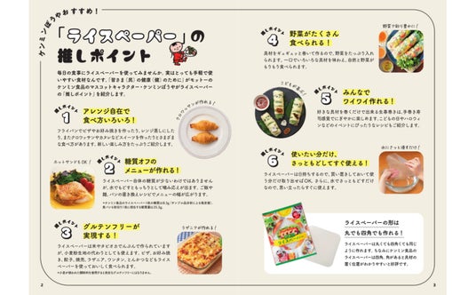 TikTokやInstagramで「#ライスペーパーレシピ」が大バズりし、多くのインフルエンサーや料理愛好家が挑戦している革新的なライスペーパーレシピが、ついに一冊の本になりました。ケンミン食品監修の生春巻きの枠を超えた驚きのレシピを多数掲載。ピザ、お好み焼き、唐揚げなどの食事系から、クロワッサン、大福などのスイーツ系まで、ライスペーパーの無限の可能性を紹介します。