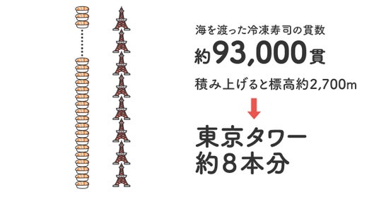 海外に渡った冷凍寿司の総貫数:約93,000貫