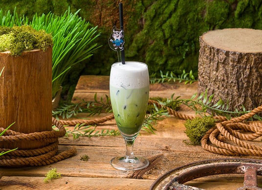 謎多きパウバートをイメージした竹炭入りの抹茶ラテ。