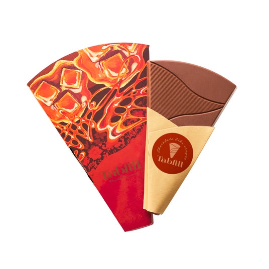 「タブフィル」は、「タブレットチョコレート」と「fill(満たす)」を組み合わせた造語で、とろりソースや濃厚ガナッシュをたっぷり包み込んだ、まるでクレープのような形状の新感覚タブレットチョコレートです。クレープのように丸かじりする背徳感と幸福感で、お口も心もいっぱいに満たされるご褒美体験をご提供いたします。