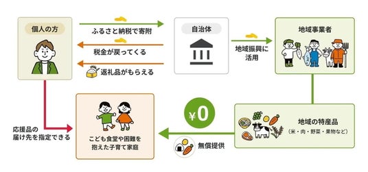 今回、連携を発表した「こどもふるさと便」は、食品ロスも活用しながら、支援を必要とするこどもたちに栄養バランスの取れた食事を届け、食育や地域活性化にもつなげることが可能な取り組みです。寄付者は、ふるさと納税を通じ、地域の特産品や体験を“応援品”として、こども食堂やひとり親家庭、難病と向き合うこどもたちなどに届けることができます。