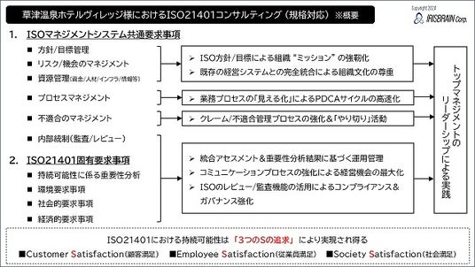 当社は、日本国内で初めて国際規格ISO21401(宿泊施設の持続可能性マネジメントシステム)の認証を取得した草津温泉ホテルヴィレッジ様の認証取得をご支援(プレスリリース)いたしました。